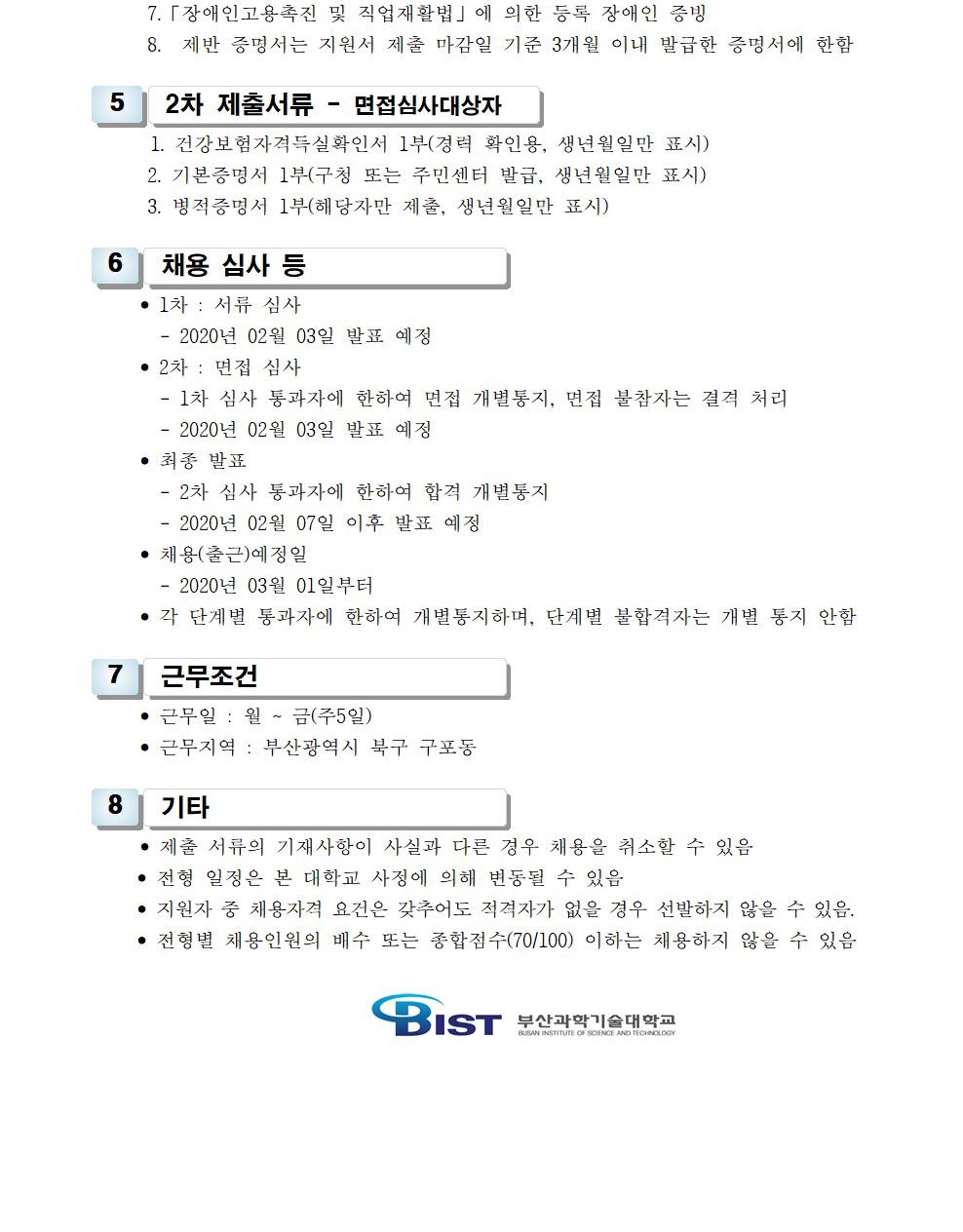 HOME > 기타 > 입찰/채용 입찰/채용 제목 [채용] 부산과학기술대학교 일반행정 계약직 직원 채용 공고 등록일 2020.01.17 11:44:49 작성자 행정지원처 첨부파일 1-3. 지원서 및 자기소개서(일반행정-계약).hwp [21.00 KB]1-2. 공고문(일반행정-계약).pdf [170.21 KB] 조회 5278 이전글 [채용] 부산과학기술대학교 산학협력단 듀얼공동훈련센터 전담 계약직 직원 채용 다음글 [채용] 2020학년도 1학기 비전임교원(겸임교원) 초빙 공고 목록 비밀글 비밀번호 입력 폼 비밀번호 입력 비밀번호를 입력하여 주세요. 관리자는 확인버튼만 누르시면 됩니다. 비밀번호 잘못된 비밀번호입니다. 비밀번호를 다시 입력해주세요. 확인