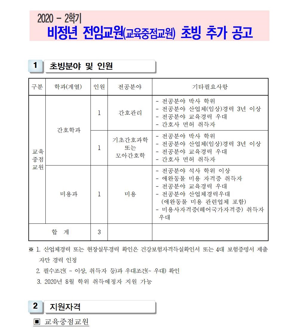 - [채용] 2020학년도 2학기 비정년 전임교원 초빙 추가 공고