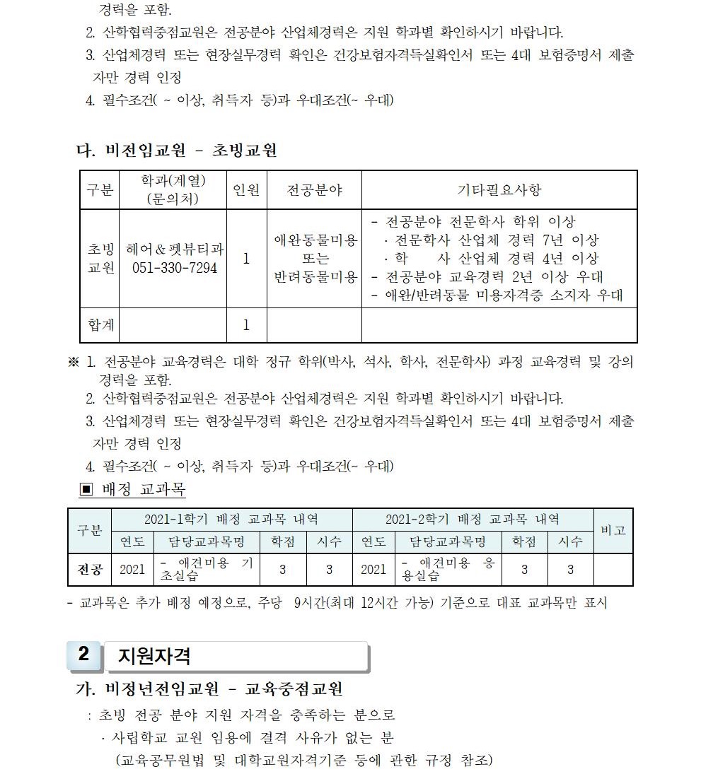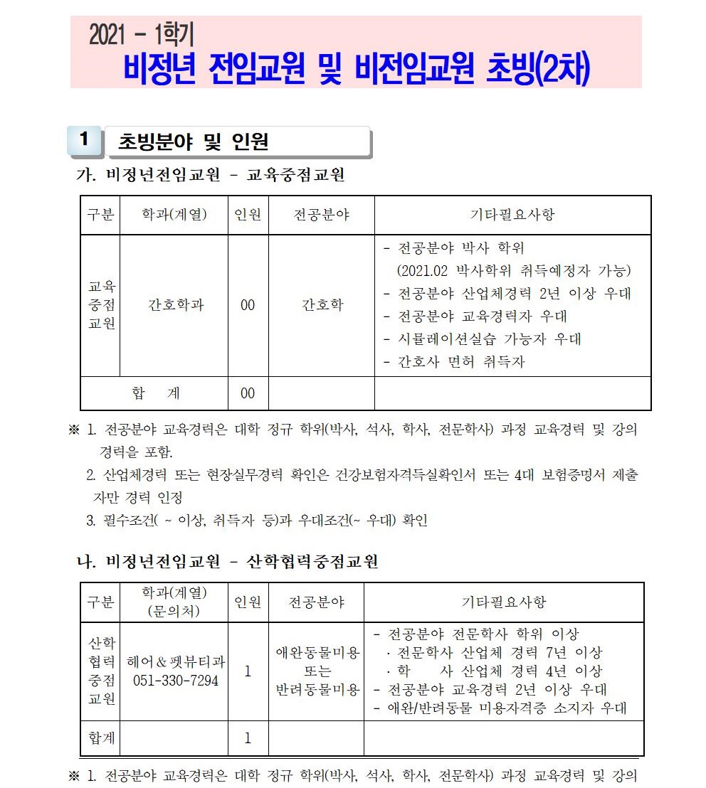- [채용] 2021학년도 1학기 비정년전임교원, 비전임교원 초빙 공고(2차)